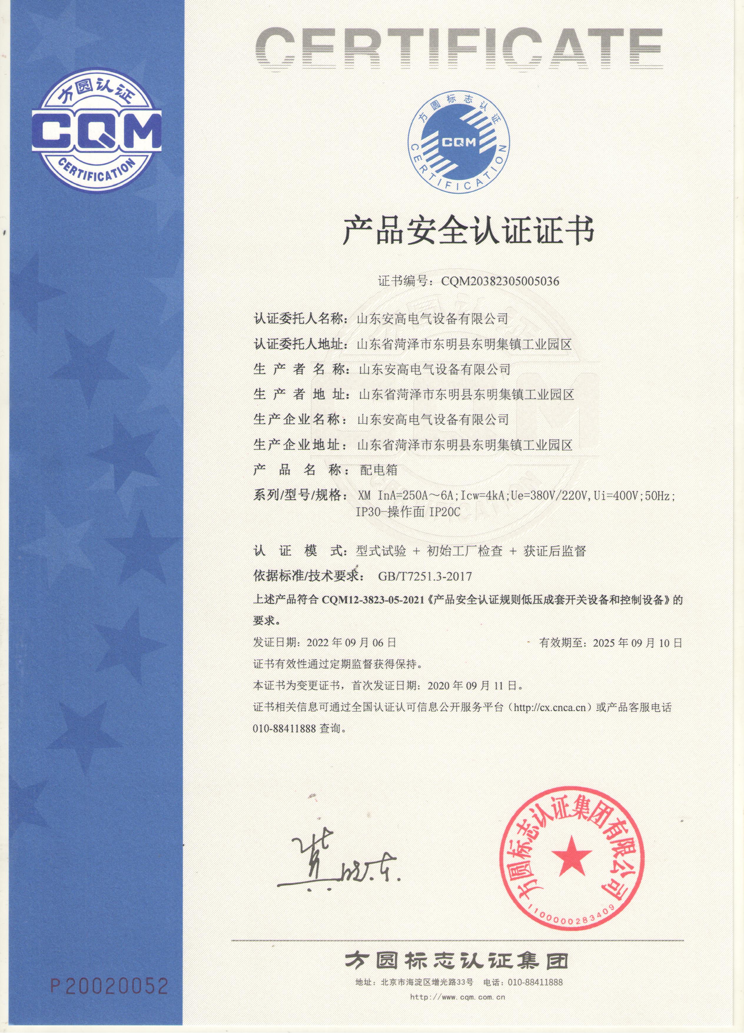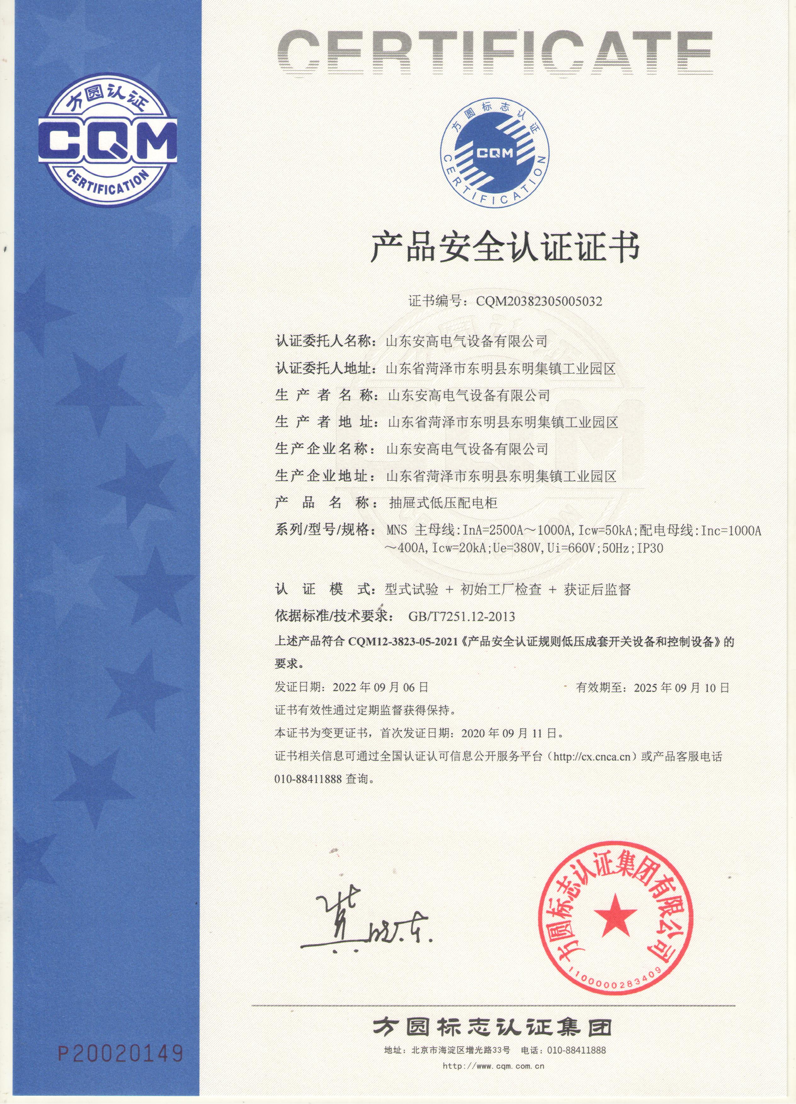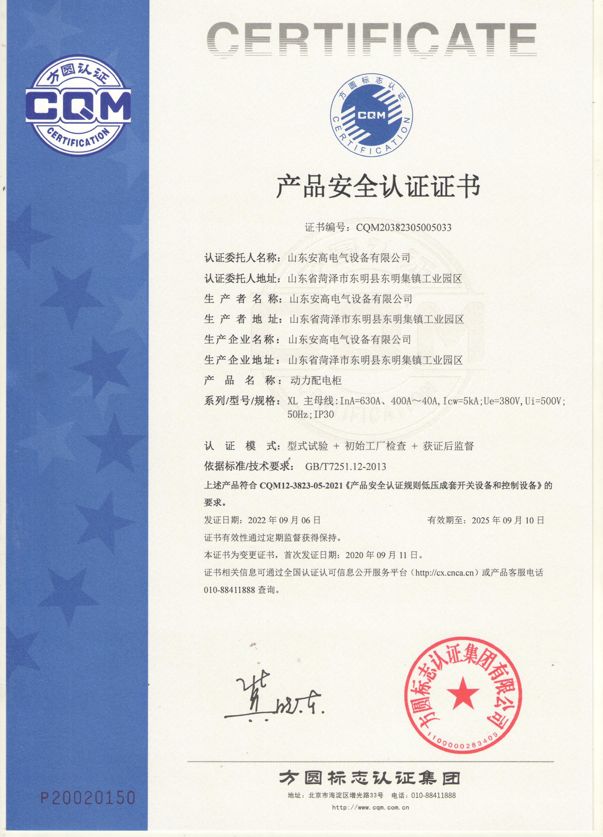 • 產(chǎn)品安全認證證書